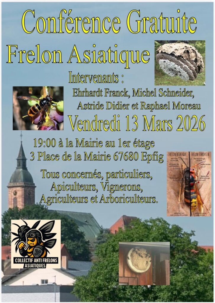 Conférence gratuite sur le frelon asiatique, vendredi 13 mars 2026 à 19h00 en Mairie d’EPFIG